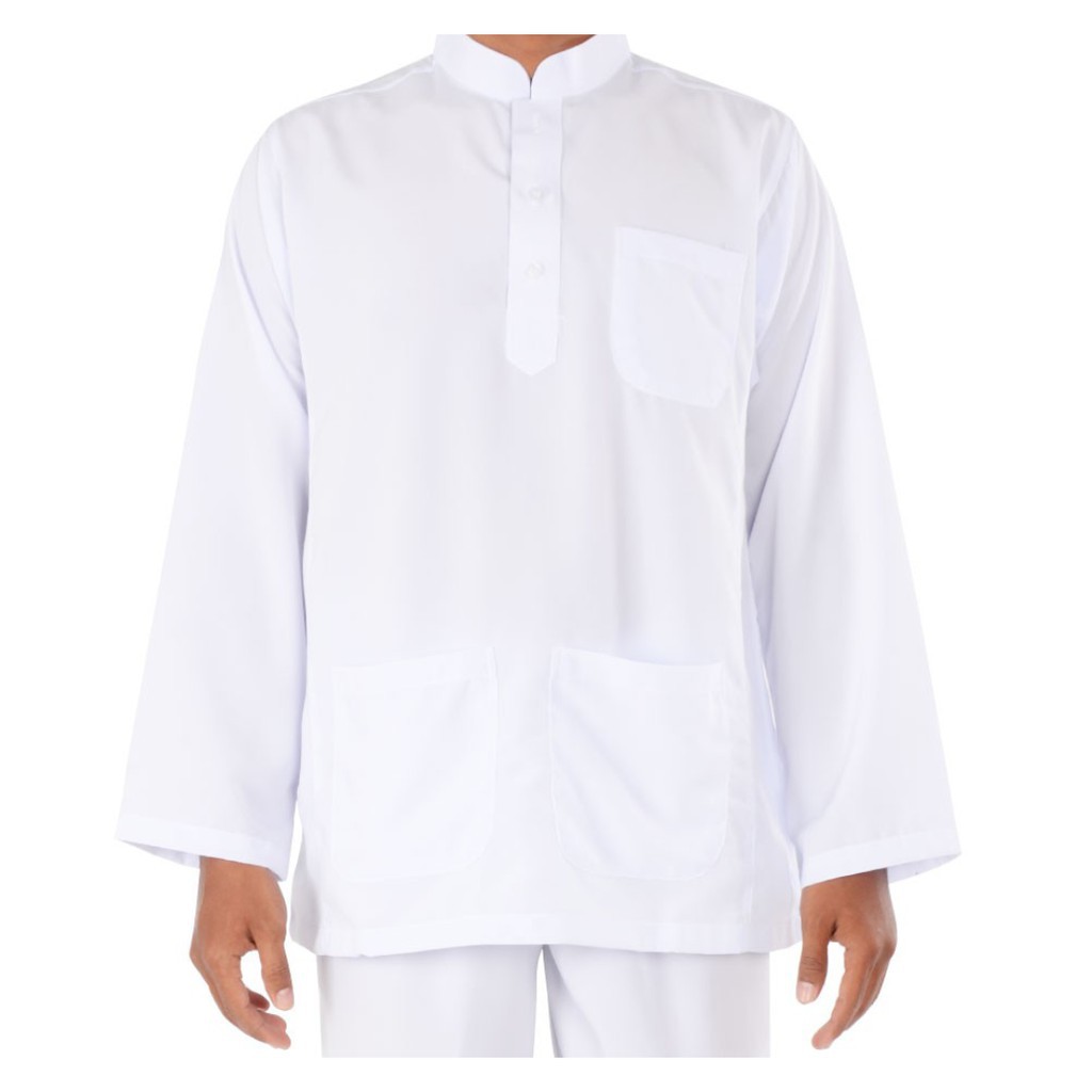 Baju Melayu Putih Pakaian Sekolah Agama Kain Licin Koshibo Set Lazada